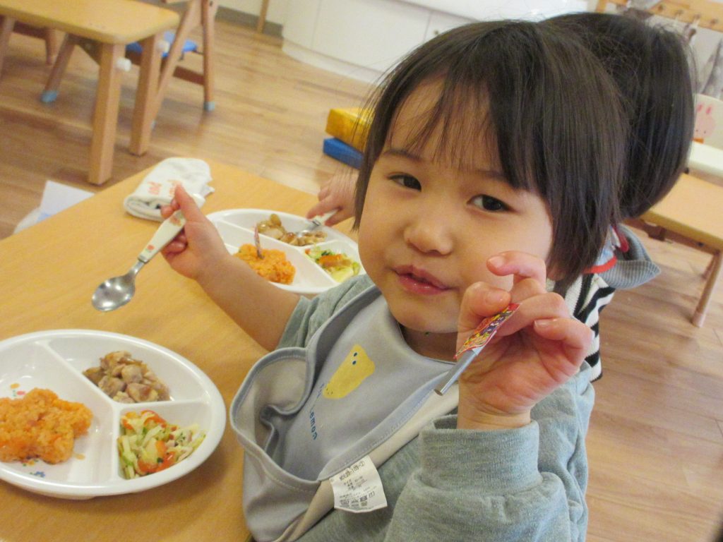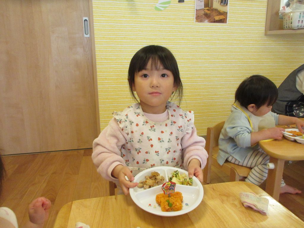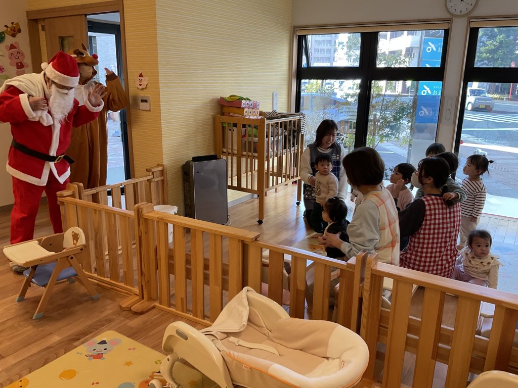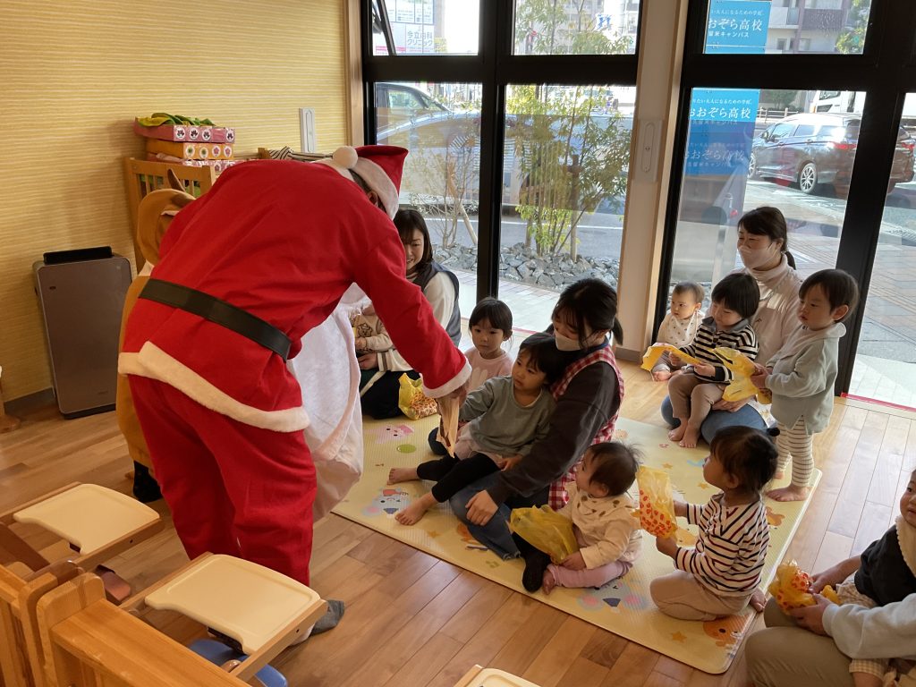 クリスマス会🎄 2025.02.6 12月25日はクリスマス会でした♪ 『ジングルベルジングルベル鈴が鳴る~♪』みんな大きい声で 一生懸命にうたっていましたよ(^^♪クリスマスは子どもたちにとってわくわく楽しみな日ですね🎅 サンタさんとトナカイさんが来てくれて、ちょっとびっくりの様子でしたが、プレゼントをもらって嬉しそうでした☆ Xmasメニューでみんなもうれしそうでした(*^▽^*)